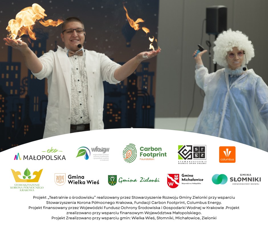 Projekt „Teatralnie o środowisku” realizowany jest przez Stowarzyszenie Rozwoju Gminy Zielonki przy wsparciu Stowarzyszenia Korona Północnego Krakowa, Fundacji Carbon Footprint oraz Columbus Energy. Projekt finansowany jest przez Wojewódzki Fundusz Ochrony Środowiska i Gospodarki Wodnej w Krakowie oraz Województwo Małopolskie. Dzięki wsparciu gmin: Wielka Wieś, Słomniki, Michałowice i Zielonki, Eko Show może docierać do kolejnych szkół i społeczności lokalnych, niosąc ideę czystego powietrza, odpowiedzialności za środowisko i radości z nauki.